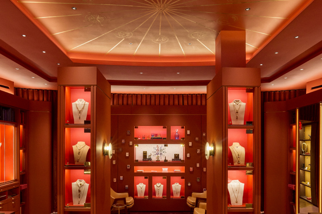 While many jewelry stores in the area embrace a traditional aesthetic, the FoundRae and Spacesmith team opted for a contemporary design with a bold, striking red color palette. Stepping into the new boutique feels like exploring a meticulously curated museum, where each room unveils layers of detail and intimacy.