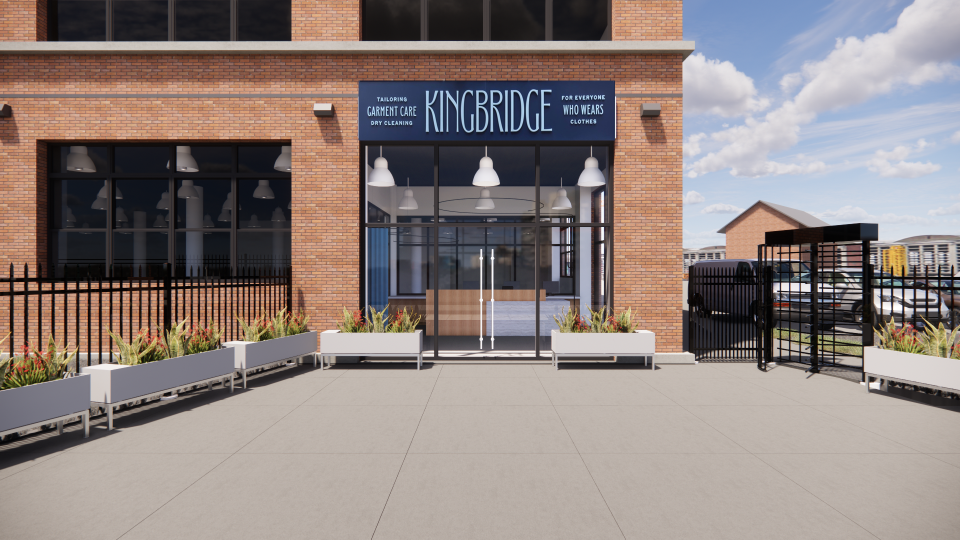 Kingsbridge Cleaners & Tailors is reimagining its first-floor space in Building 275 at the Brooklyn Navy Yard with the addition of a retail store. Located on the building’s south side with direct access from Flushing Avenue, the new storefront will welcome customers through a refreshed façade, enhanced by a small, paved plaza and improved pedestrian access. Inside, a bright and modern service area will feature a dedicated counter with a POS station, while glass partitions offer a behind-the-scenes view of the cleaning plant in action. Designed with both functionality and customer experience in mind, the project will bring a fresh retail presence to this historic industrial setting.